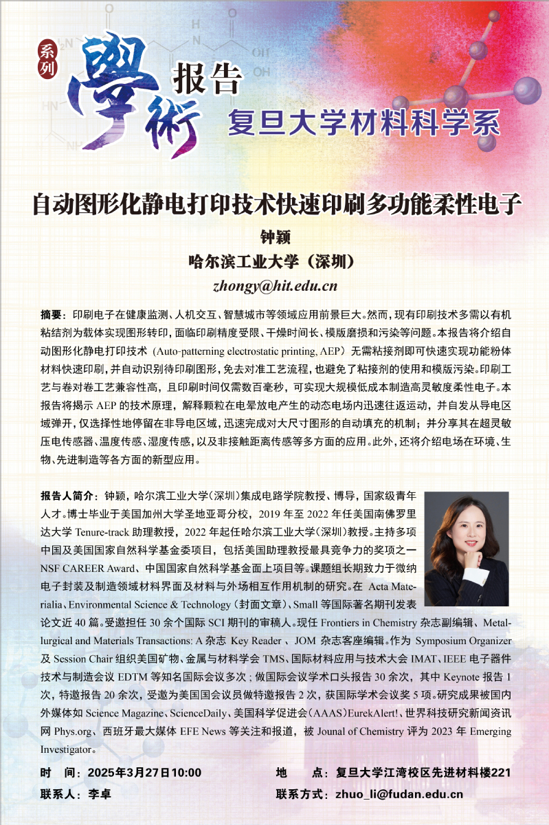 自动图形化静电打印技术快速印刷多功能柔性电子