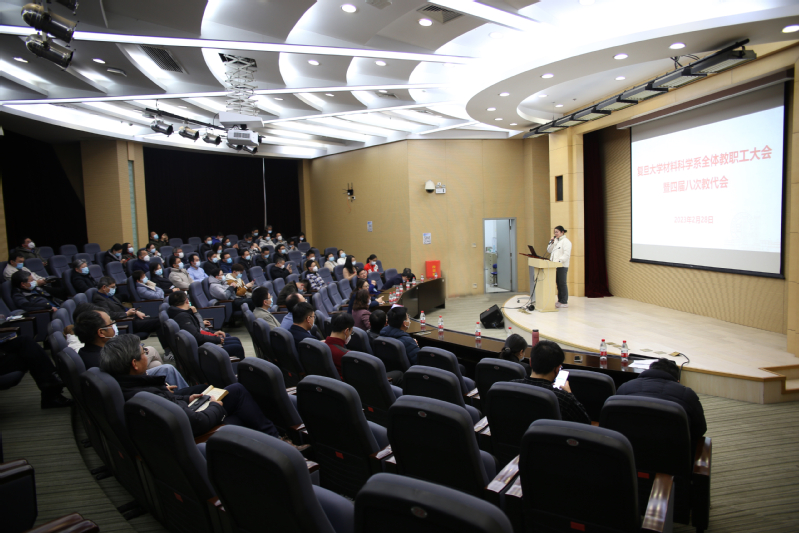 2023年2月28日下午,腐漫画 在江湾校区先进材料楼一楼报告厅召开全体教职工大会暨四届八次教代会,会议由系工会主席宋云主持。