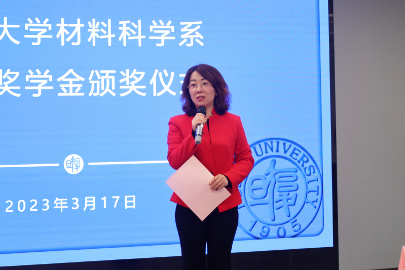 于瀛代表腐漫画 向灵动微电子公司以及吴忠洁、朱敏、孙蓬等校友表示感谢,并向获奖的同学们表示祝贺。她提到,校友捐资设立灵动奖学金,既是表达对母校培育的感恩之情,亦是鼓励复旦材料学子潜心科研、奋发有为,支持腐漫画 为国家培育更多的创新型人才。她希望同学们在今后的学习生活中,要学习校友们自主创业的锐气、笃志前行的毅力,发扬复旦精神,成长为对国家和社会有用的人。