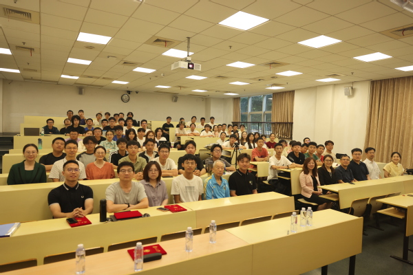 关工委委员、退休教授陈国荣为同学们讲授第一堂思政课。课堂采取了问答对谈的方式。在与同学们的一问一答中,陈国荣向新生们讲述了材料人求学、治学、卓学的故事。他分享了自己的求学经历和走上研究道路的心路历程,以此回答同学们关于个人学习和未来研究的疑问。作为同学们的老学长,陈国荣多次提及自己的导师华中一先生,讲述了在治学为人和科研道路上导师不可或缺的引领作用。他还讲述了承担国家重点攻关项目的经历,鼓励同学们以国家和社会的需要为己任,结合自己的兴趣,探索未来的多种可能。同学们深受鼓舞,更深刻地体会到老一辈材料人艰苦奋斗、科研报国的精神,教室里互动踊跃、掌声阵阵。