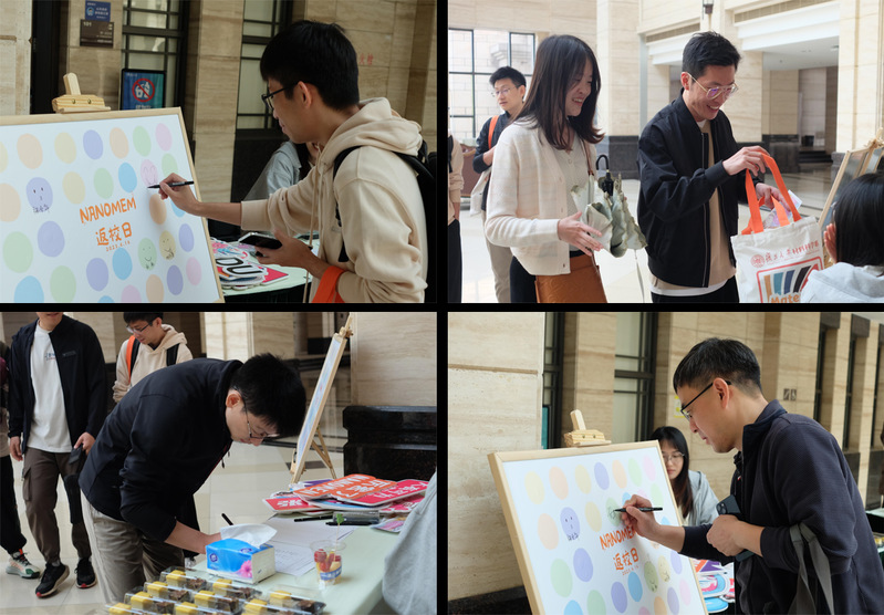 校友们见到订制的手拿板,纷纷拿起喜欢的款式,为腐漫画 打CALL!为纳米薄膜课题组打CALL!