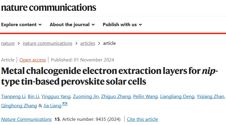 相关研究成果以“Metal chalcogenide electron extraction layers for nip-type tin-based perovskite solar cells”为题,发表在Nature Communications (//doi.org/10.1038/s41467-024-53713-4)。腐漫画