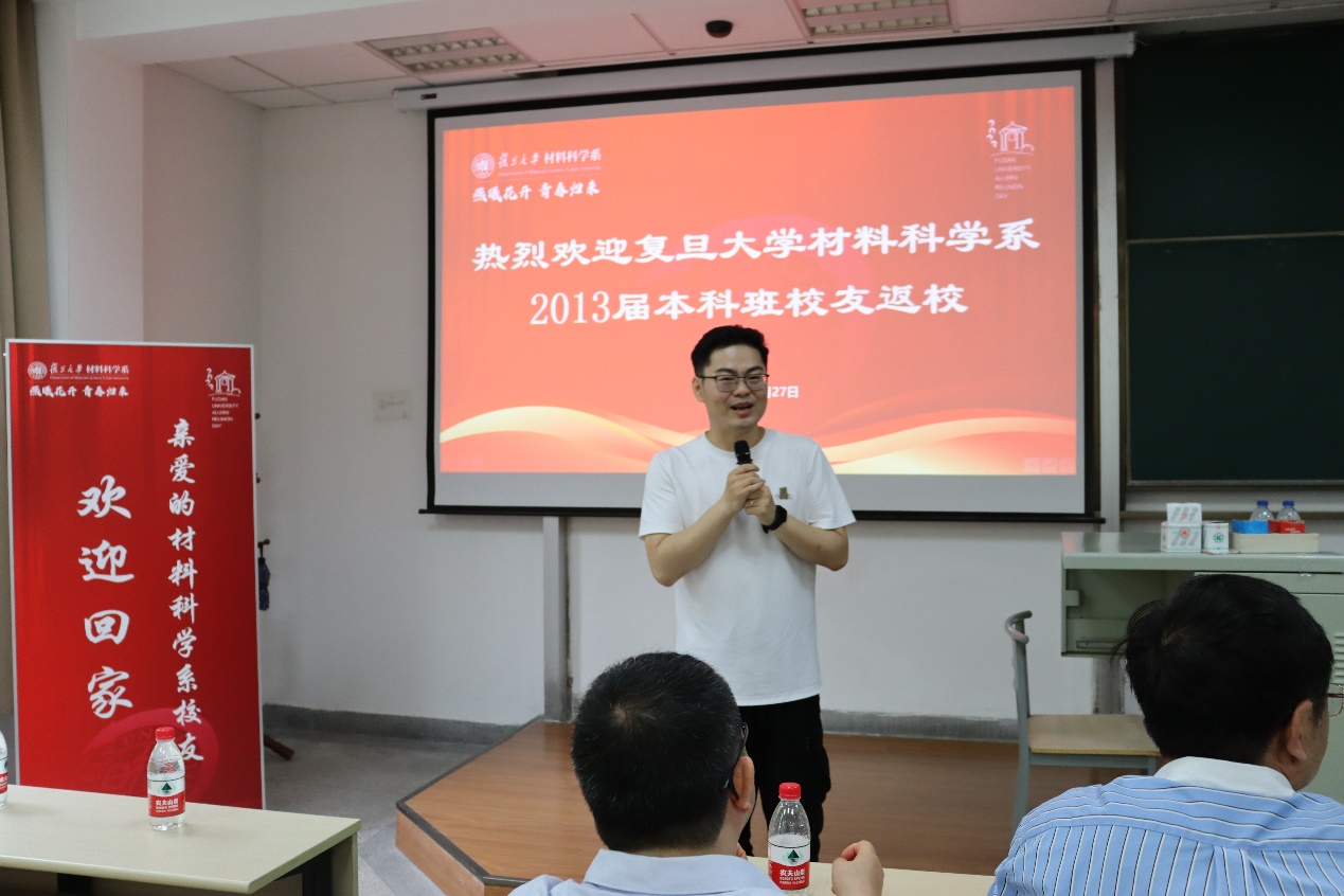 活动伊始,于瀛书记代表全系师生对校友们的返校表示热烈欢迎。她回忆到,十年前,作为班导师,她亲手将同学们从复旦送出去,向着世界各地启程远航;十年后,大家在各自的工作岗位上发光发热,不顾路途遥远,千里迢迢,赶回母校,只为共叙曾经的这份浓浓情谊,她感到无比欣慰。于瀛书记特别强调,腐漫画 是每一位材料学子永远的家,温暖的港湾以及坚强的后盾,希望大家常回家看看,她和系里的老师们会像父母一样永远在家等待各位校友的回归,共同见证腐漫画 更加美好的明天。