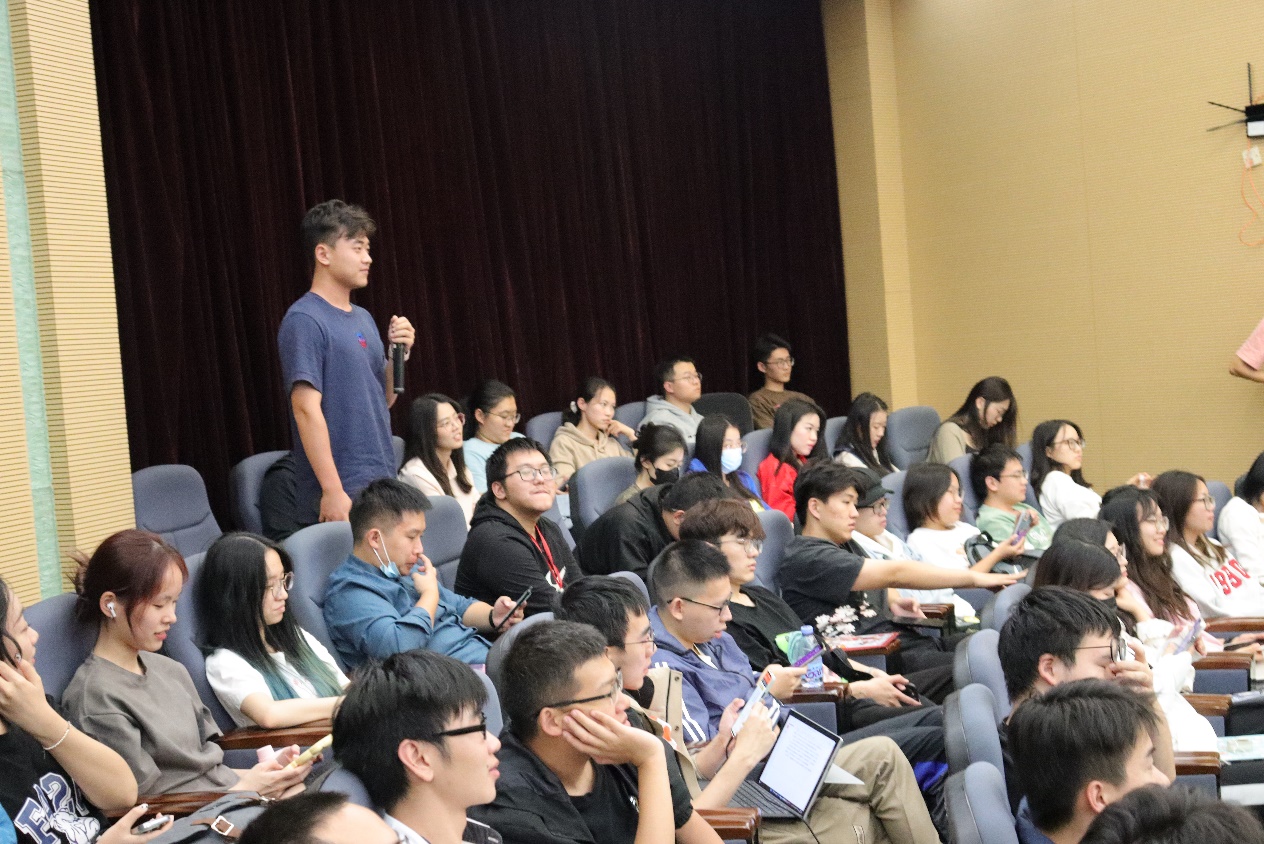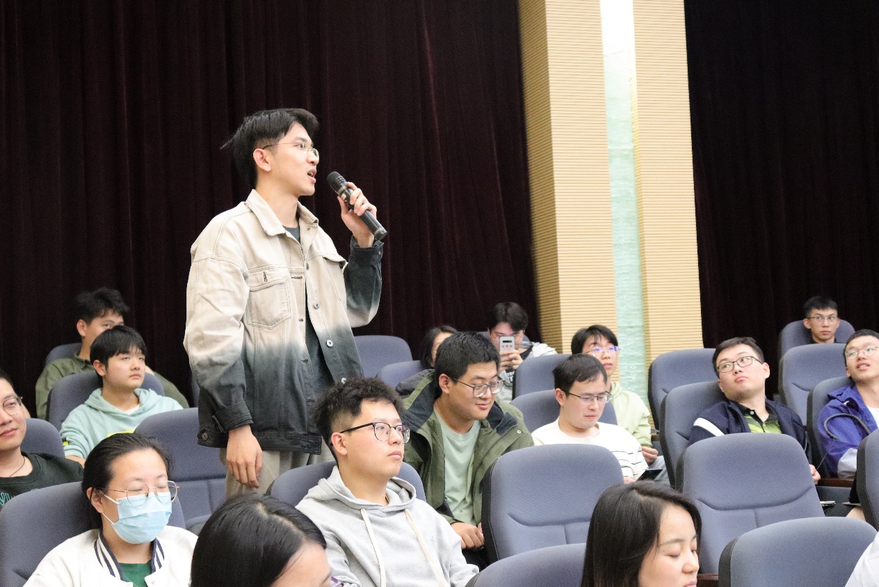 会上,同学们积极提问,与青年老师就有机半导体热效应、国内新能源汽车产业情况等问题进行深入的学术探讨。