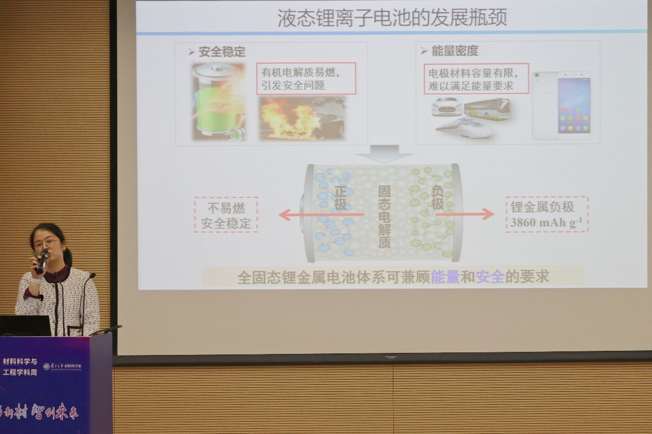 宋云教授作了题为“氢化物基全固态电解质”的学术报告。她笑称:氢化物目前虽然不是主流电解质,但是“机理有可能是掌握在小众电解质手中,也希望大家不要戴‘有色’眼镜对待氢化物”,基于此背景,宋教授团队利用还原性氢化物对锂稳定的特点揭示了固态电解质中枝晶的内源生长机制。在问答环节,宋教授介绍,通过界面钝化技术,将氢化物与卤化物形成双层电解质的方案能够拓宽器件的氧化/还原电化学窗口。最后,她鼓励学子们在研究中要摒弃固有思维,不迷信权威,坚持独立思考,在脚踏实地的前提下,突出个性,施展才华。