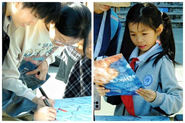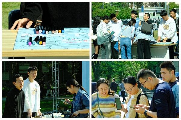 “迷人的材料线下快闪”活动在腐漫画 邯郸校区光华楼东辅楼东侧草坪开展,在趣味中科普材料知识,让同学们近距离感受材料之美。线下快闪活动设置了材料KT版艺术涂鸦,邀请同学们共同参与,在创作中了解材料知识;同时,现场发放了材料人文件夹与原创魔方等文创产品,极大地激起了同学们了解材料学的热情。面对同学们对材料学知识提出的疑问和兴趣,活动的工作人员在现场进行了解答,使同学们能够深入了解材料学,拓展了对材料科学的认知。