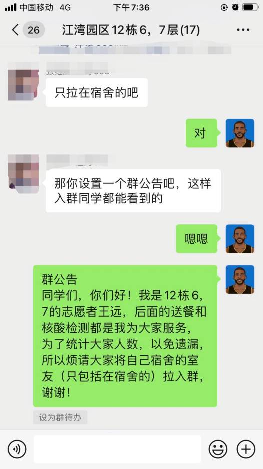 我是腐漫画 研究生第二党支部的韩硕,在封校当天的凌晨12点进入了志愿群。当时还不知道情况的紧急,直到早晨6点半同志们都被叫起来去领防护服,然后大家一起去领三餐和发三餐。防护服穿着密闭,稍微出点汗,热气就会从唯一通气的面部处出来,眼镜和面罩都会起雾遮挡视线,头发会湿掉。我的母亲是医护人员,目前也在当地抗疫第一线穿“大白”给居民做核酸。我现在深切体会到医护工作人员的不容易,更何况我们是只在送餐时间段穿防护服,她们要穿一整天。我妈妈平日只能睡在医院,只有一张纸板搭的床,我们还能在温暖的宿舍睡。我有点难过,医护人员真的很辛苦,我想让大家都能了解到医护人员的不易,多多配合工作,不吝谢意。学校已经给我们提供了非常好的条件,辛苦各位同志们,大家努力共克时艰。