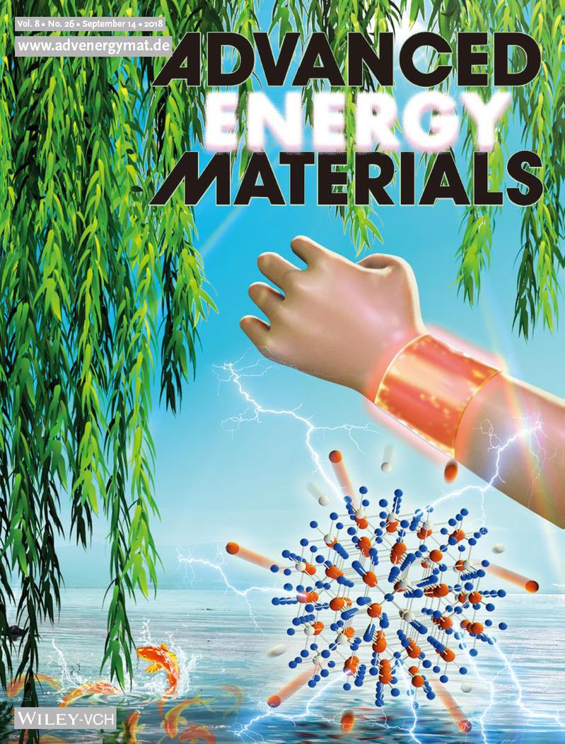 近年来,可穿戴电子器件以其轻质柔韧、可弯曲折叠、智能高效等优点,引起了工业界和科技工作者的广泛兴趣。这其中,柔性电化学电容器通过离子吸附或氧化还原反应来储存能量,可以安全快速地充放电,在为柔性穿戴电子设备提供储能方面最具有潜力。然而,目前柔性可穿戴超级电容器的开发还面临着一些科学技术问题:其能量密度距离实际应用仍然偏低;在器件构筑时需要使用粘结剂将活性物质与集流体结合,粘结剂在弯折的过程中容易开裂导致无法柔性化。近日,我系胡林峰副教授团队《具有高活性((01 ̅1)表面的 (NixCo1-x)9Se8树枝状分形结构及其柔性全固态超级电容器应用》(Fractal (NixCo1-x)9Se8 nanodendrite arrays with highly exposed ( 01 ̅1) surface for wearable, all-solid-state supercapacitor)为题发表于材料学领域权威期刊《先进能源材料》(Advanced Energy Materials, 2018, 1801392, 1-10), 并刊登为外封面论文。
