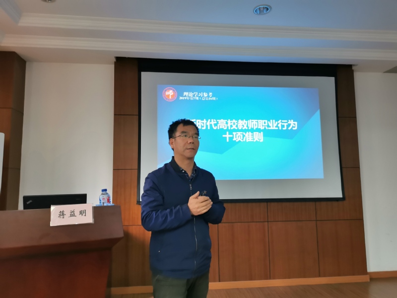 最后,蒋益明老师结合新时代高校教师职业行为十项准则,要求全体教师坚持立德树人根本任务,认真开展“三全育人我当先”教育实践活动,弘扬积极向上的师德师风,加强对学生的思想引领。