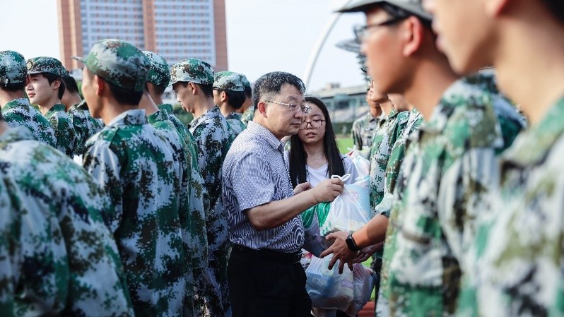 全体党政领导到南区训练场亲切慰问所有参训的本科生。