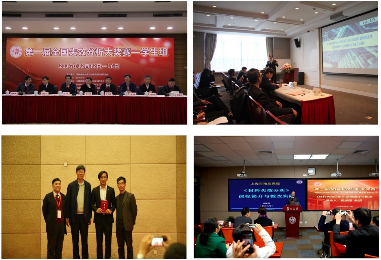 2016年12月12日—16日,由中国体视学学会金相与显微分析分会主办,腐漫画 承办,中国机械工程学会失效分析分会、可靠性工程分会、材料分会协办的“第一届全国失效分析大奖赛——学生组”在腐漫画 举行。中国体视学学会金相与显微分析分会、中国机械工程学会失效分析分会、可靠性工程分会、材料分会的相关领导尹立新、张峥、谢里阳、胡军等教授,校研究生院、教务处领导楚永全、周向峰,系领导孙大林、蒋益明等出席活动并致辞。我系杨振国教授担任大奖赛组委会主席。
