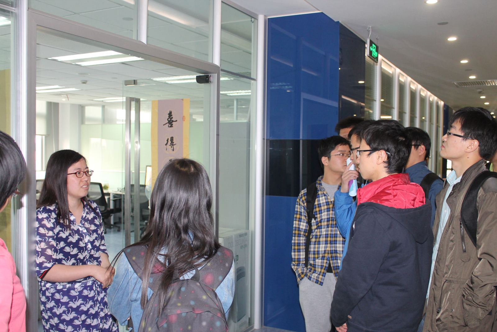 之后,我们在申老师和沈老师的介绍下,参观了基金会的企业办公区域和为创业者设计建造的咖啡吧。在办公区域同学们巧遇了一位开办游戏公司的创业者。好多同学聚拢在她身边,听她的创业故事,并纷纷讨论起来。讨论结束后她热情的欢迎我们来实习,真实感受创业的魅力。