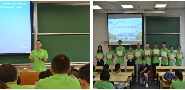 8月22日上午,体验营毕营仪式在光华楼举行。各组营员代表纷纷上台为自己的复旦初体验进行总结。来自达州中学的贝咏琪同学说到:“从复旦人身上受益匪浅,见到了一个个活泼有趣的灵魂,一个个独立智慧的个体,以及一整个充满个性与包容的集体”;江油中学的张哲荥同学谈到:“几天的复旦生活让我明白,世界如此之大,我们不应该偏安一隅,而应该为自己搭建一个较高的平台,去展望这个世界,做一个具有世界眼光中国灵魂的现代青年”。大家纷纷表示,“复旦明年再见,我相信我们的缘分不止是五天!”。蒋益明老师对营员们也表达了祝福和期待,最后在各位老师们为营员颁发结营证书后,体验营正式结束。
