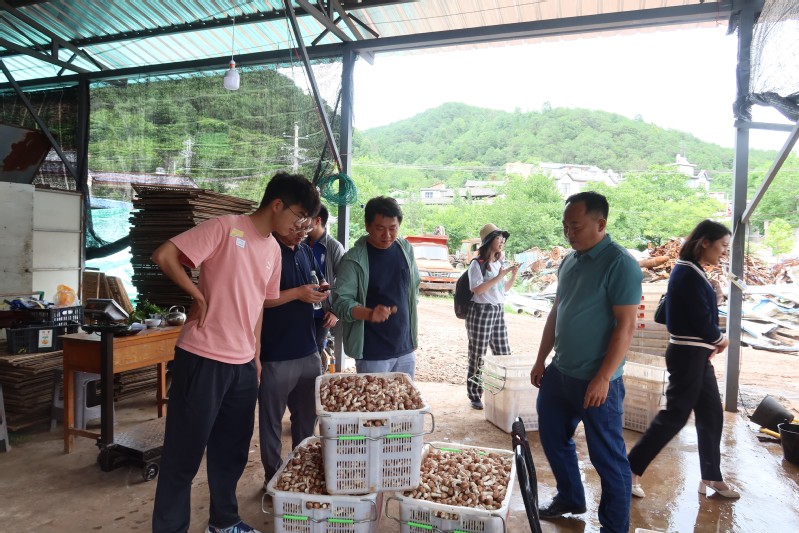 下午,实践团赴博南镇胜泉村调研乡村产业发展情况。在工作座谈会上,村支书杨肖田介绍了胜泉村产业现状,复旦驻村书记高铭远介绍了胜泉村基础建设遇到的困难以及胜泉村希望得到帮扶的领域。腐漫画 倪峰、王珏表示,胜泉村是腐漫画 重点帮扶村,近年来腐漫画 一直通过相关校友企业,引入先进涂料,致力于美化胜泉村的村容村貌。今后腐漫画 也会继续在消费帮扶、乡村美化等方面重点支持胜泉村的发展。座谈会后,实践队员同村两委一行人对当地基础设施以及姬松茸种植基地进行了实地考察。