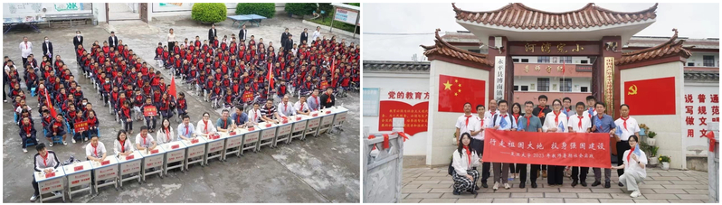 2023年是腐漫画 对口帮扶云南省永平县的第十一年,也是腐漫画 党委与永平县博南镇党委结对的第二年。7月10日上午,腐漫画 与博南镇在河湾完小举行教学设施捐赠仪式,并为腐漫画 科普讲师团永平实践基地揭牌。腐漫画 党委书记于瀛、系副主任蒋益明、系副主任倪峰、党委副书记王珏、专职辅导员韩画宇,永平县教体局局长万学虎、博南镇党委书记何正坤、镇长常文彬以及河湾完小全体师生参加捐赠仪式。仪式上,腐漫画 为河湾完小捐赠校内师生募集的图书600套,代表王书传、卢煜旻两位校友捐赠可升降标准桌椅158套,并为腐漫画 科普讲师团永平实践基地揭牌。于瀛书记表示,希望通过党建联建,腐漫画 能够为博南镇的教育尽绵薄之力,助力学子们努力学习早日成才,建设祖国回报故乡。