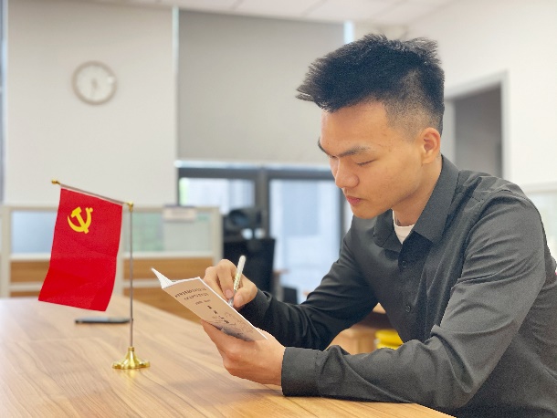 研究生第五党支部支部副书记冉国永就上海电气重装备基地、上海华力集团、上海宝钢研究院等专业参访的收获感悟做分享与交流,探讨如何巩固深化“结合特色学”教育成果。他表示,多次的实践参访活动使他受益匪浅,加深了对企业运作的了解,也为自身职业规划提供重要参考。在参观宝钢研究院时,他了解到从最初上海郊区的小厂房,到现在建有几十个分厂,宝钢研究院近年来蓬勃发展。市场印证了钢铁不是夕阳产业,材料永远是制造业的支柱,对基础材料的钻研耕耘和持续研究是绝对必要的!值此建党百年之际,作为材料人应明确目标,脚踏实地,怀凌云志,成为勇担民族复兴大任的时代新人!