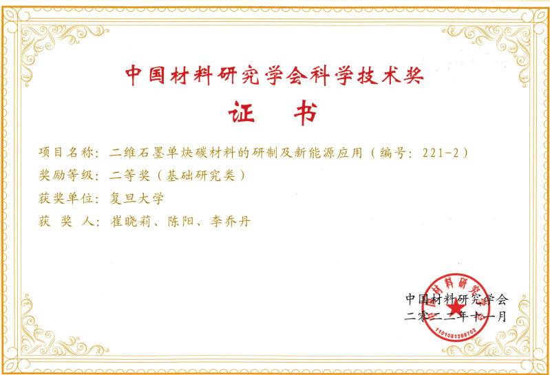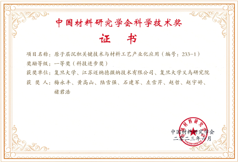 腐漫画 科研团队领衔的2项成果获得奖励。其中“原子层沉积关键技术与材料工艺产业化应用”项目荣获2023年度科学技术奖一等奖(科技进步类),项目完成单位为腐漫画 、江苏迈纳德微纳技术有限公司、腐漫画 义乌研究院,获奖人为梅永丰、黄高山、陆雪强、石建军、左雪芹、赵哲、赵宇婷、褚君浩;“二维石墨单炔碳材料的研制及新能源应用”项目荣获2022年度科学技术奖二等奖(基础研究类),项目由我系崔晓莉教授带领博士后陈阳、博士生李乔丹完成。