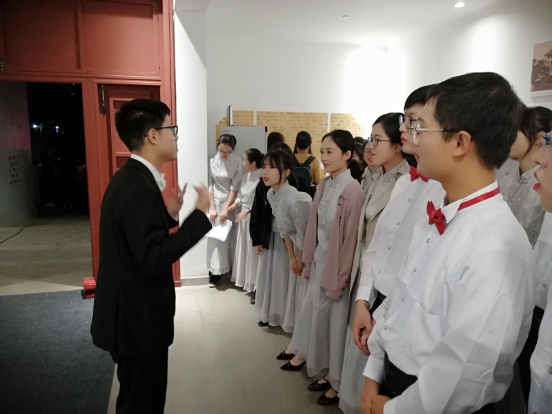 为了最大程度的发挥学生的自主性,本次合唱的指挥由本系2017级本科生孙康耀担任,伴奏由本系2018级本科生孙晓晨担任。两位同学全情投入,付出了大量时间和精力。