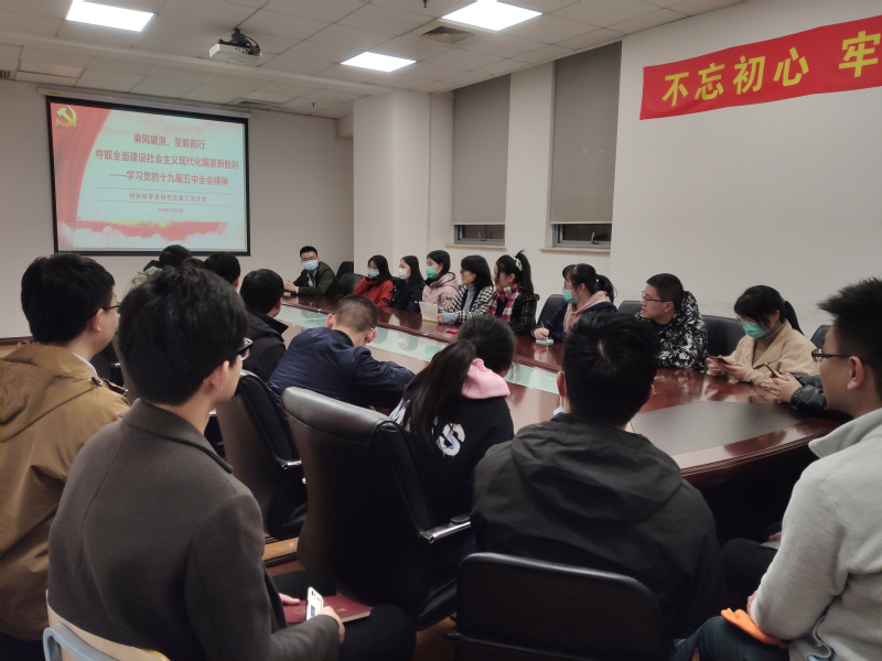 近日,腐漫画 研究生第二党支部开展组织生活,专题学习十九届五中全会精神。支部成员们在原原本本学习十九届五中全会公报等相关文件的基础上,深入研讨“十四五”规划和二〇三五年远景目标,畅谈中国未来五年、十五年的发展新蓝图。