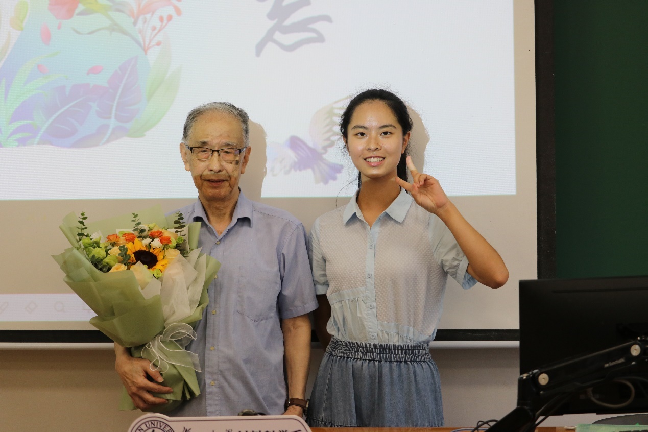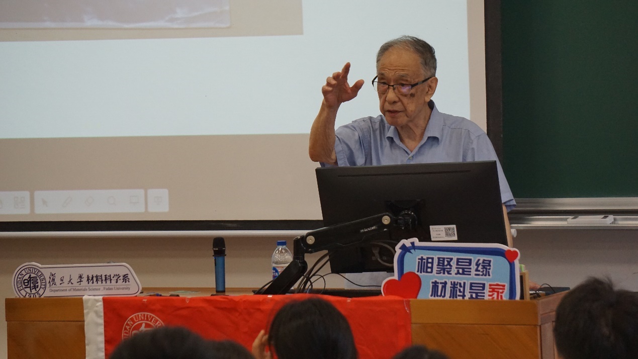 系关工委委员、退休教师代表邵丙铣老师向新生们提出了谆谆教导。邵老师以自己的求学经历引入,展示了学生时代珍藏的笔记和照片,有作为研究生在实验室开展工作的照片,有学习时认真研读过的谢希德校长主编德《固体物理学》教材等。他深情回顾了谢希德老校长等老一辈复旦大先生们坚定选择回到祖国开展科研攻关,潜心投入复旦教育事业的感人故事,介绍了腐漫画 的先辈们在艰苦环境中为新中国集成电路事业发展做出的卓越贡献。当他讲到腐漫画 老先生们四处奔波用自筹科研经费建成材料一楼的往事,不禁激动地湿了眼眶。邵老师告诫同学们,时代的接力棒在一代代材料人的手中传递,科学精神和优良学风也在一代代材料人之中传承,希望同学们能传承前人精神、立足本职放眼世界,刻苦奋斗书写更加精彩的篇章。同学们被邵老师的讲述深深感染,对腐漫画 先辈们的敬业乐学精神愈加敬佩,教室里不断响起一阵阵掌声。在第39个教师节来临之际,学生代表向邵老师献上了鲜花与教师节祝福。