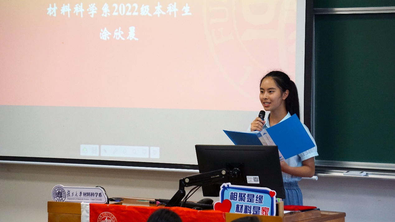 2022级材料物理专业学生涂欣晨同学作为学生代表上台发言。涂欣晨同学回顾了选择复旦、选择材料的心路历程。涂新晨同学提到,选择腐漫画 ,既是以兴趣择专业,更是以理想担责任。展望未来,作为材料科学系新学子,涂欣晨同学与同学们共勉,牢记昂扬奋进、坚韧顽强、无畏拼搏的精神,号召大家在腐漫画 大家庭中砥砺奋进、追求卓越,为国家智造、解决“卡脖子”难题做出自己的一份贡献。